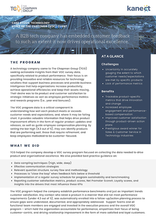 See how Kanect helped tie product and customer satisfaction to strategic initiatives as well as employee rewards programs.